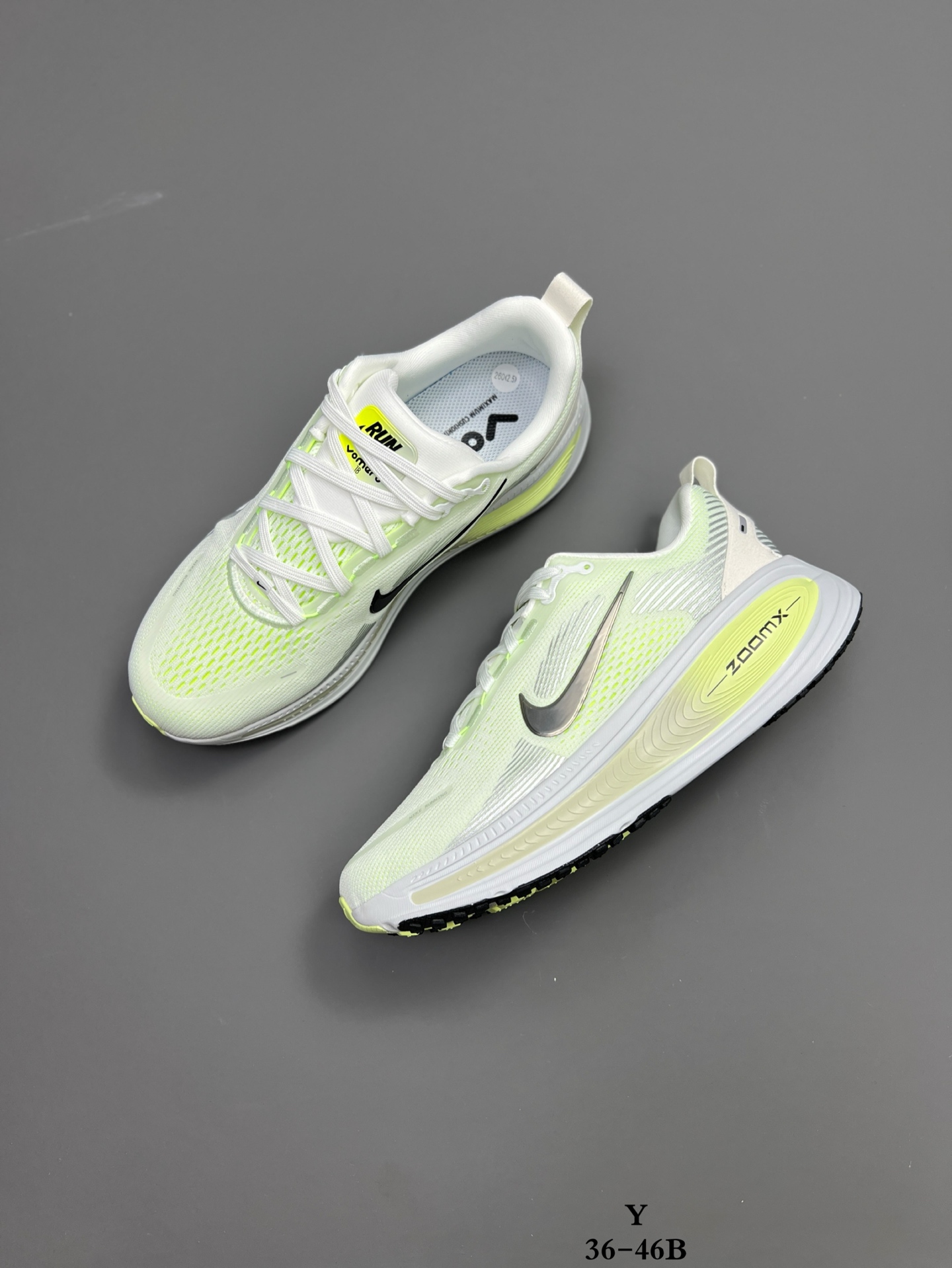 本地自取 【新品实拍】公司级真标半码制耐克 Nike VOMERO 18 舒适减震防滑 低帮跑步鞋 全掌ReactX泡绵中底 前掌和后跟还配备了Air Zoom气垫单元 据说跑起来更快更舒适哦 这次最大的升级点 首次引入了ReactX泡绵 货号:HM6804-107 尺码:35.5 36 36.5 37.5 38 38.5 39 40 40.5 41 42 42.5 43 44 45 YCD007