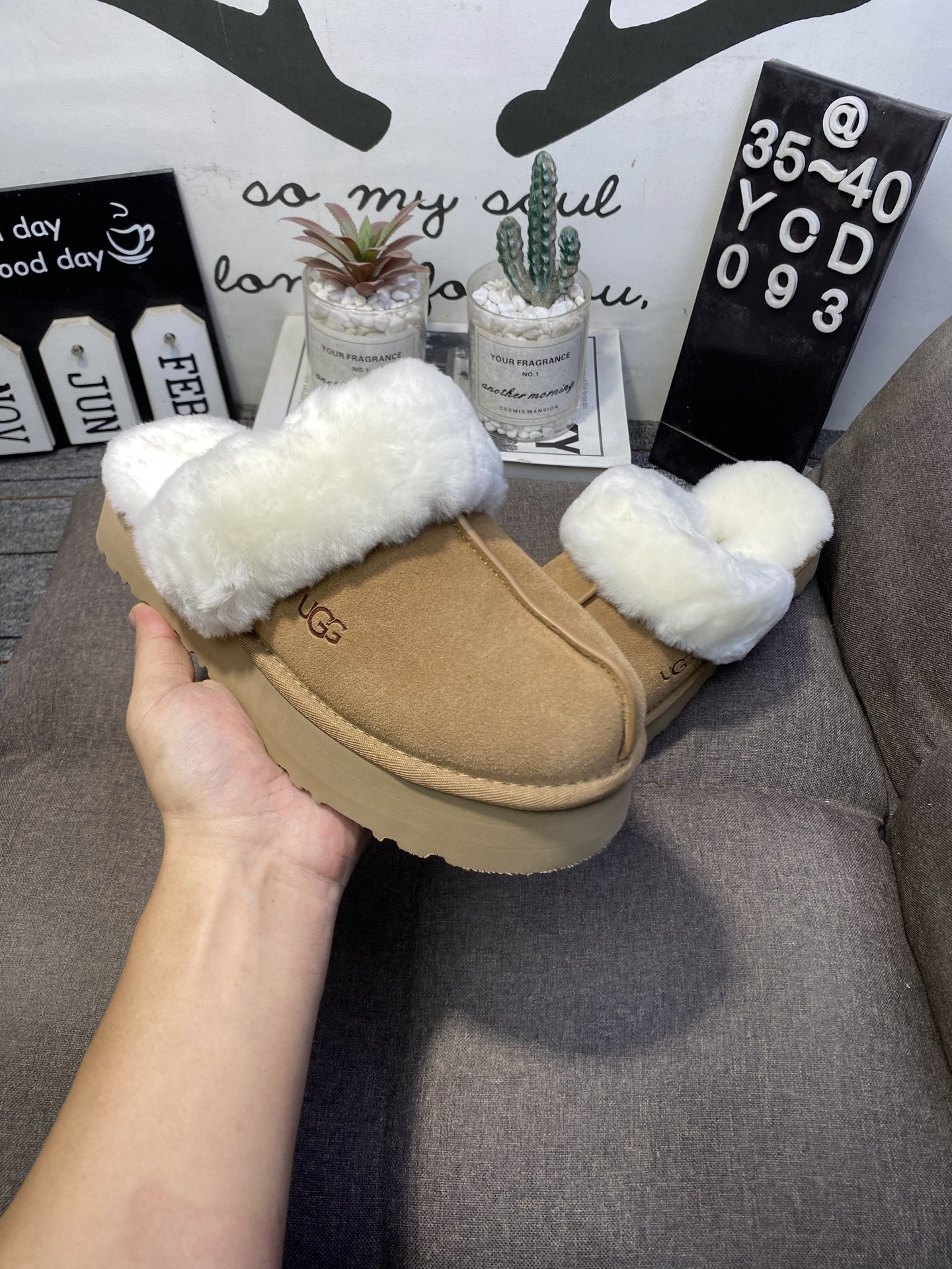 UGG秋季女士时尚经典舒适简约厚底毛拖包头休闲懒人毛毛鞋YCD093