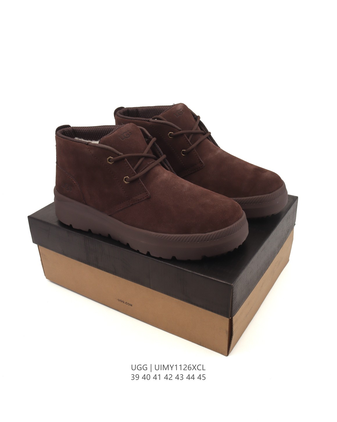 【公司级】UGG/雪地靴 男鞋广东原产,采用TPU模压鞋面内嵌羚羊棕羊毛,鞋面具有防水功能,选用7毫米UGGPURE 植入式羊毛里衬与可拆卸的UGGPURE 植入式羊毛鞋垫,Treadlite轻翼科技外底-优质的防滑,耐磨性,和良好的弹性秋冬季新品周冬雨代言款,美国轻奢品牌UGG 系列中筒加绒休闲百搭短靴。 类型:男鞋 码数:39-45 编码:UIMY1126XCL