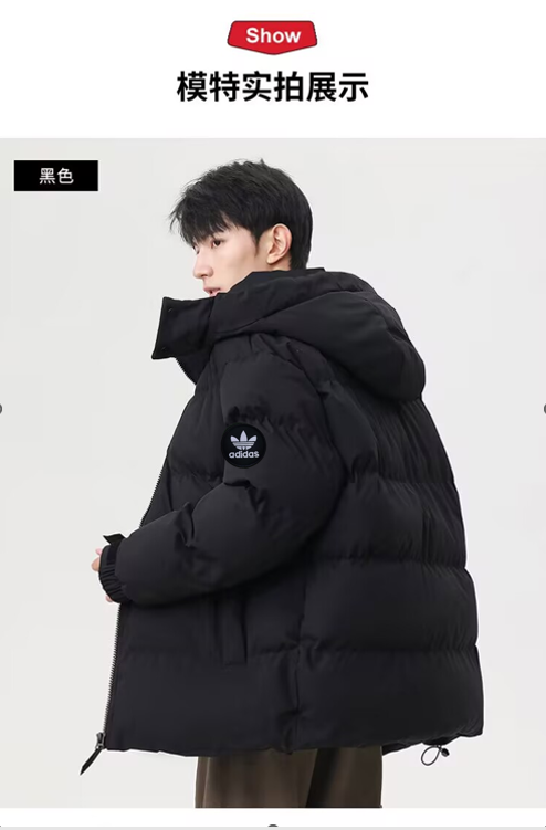 M L XL 2XL 3XL 4XL M L XL 2XL 3XL 4XL M L XL 2XL 3XL 4XL (三叶草 25冬款 外套连帽棉衣男女同款82619-705#)